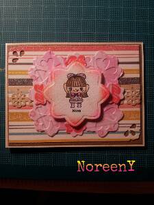 Um...3 days in a row!!! I think I am back on track? I managed to make a mini card (3"x4") after work. I used a mini stamp which I got when I was in Taiwan a few months ago! Her name is Nina. She is so cute!!! And I realized I havent used my nestabilies for quite a while, so I used my Dahlia in different sizes! I am going to try to get back on my crafting side, hopefully I will be back with all the challenges soon. xxx